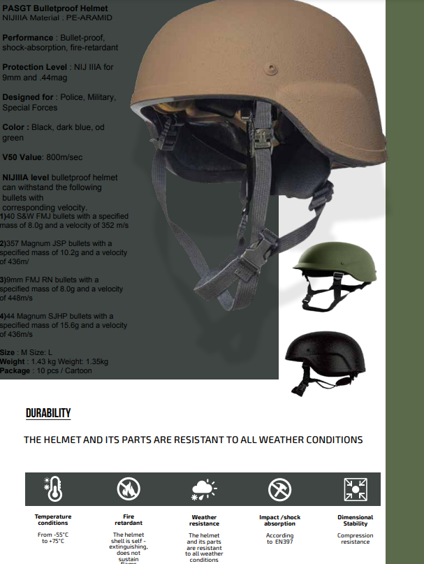 PASGT Bulletproof Helmet NIJIIIA Material: PE Performance: Bullet-proof, shock-absorption, fire-retardant